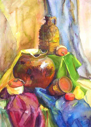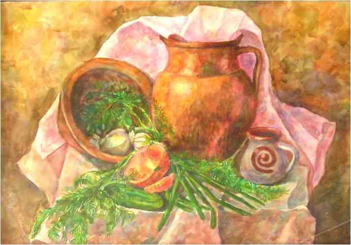 This technique requires great accuracy and cannot be re-written. It is performed on a special watercolor paper. I use this technique when I paint portrait, landscape, still-life paintings, urban landscape.