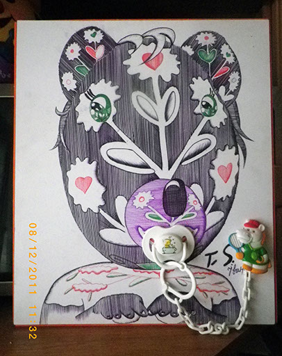 My original technique - it also a graphic technique performed by the simplest graphical tools such as a ball-point pen and pencil. My task was to connect Ukrainian traditions of the transmition of artistic image of surface. One of them is pysankarstvo (painting Easter egg). My authorial technique appeared thus.
